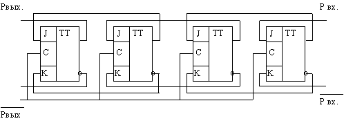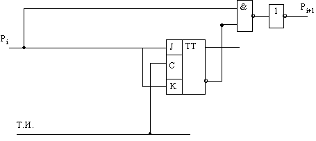 рисунок 3.4 3.2.5. Микрооперация счета (-1) с последовательным переносом. Учитывая тот факт, что синтезированный двухступенчатый триггер переключается по заднему фронту, получаем следующие функции возбуждения триггеров.