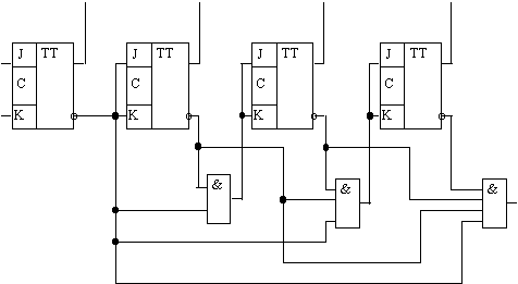 рисунок 3.9 3.3. Построение объединенных функций возбуждения. Построение объединенных функций возбуждения триггеров реализуется следующим образом : - построение объединенной таблицы функционирования для каждой микрооперации и каждого установочного входа триггера ; запись и минимизация функций возбуждения . Таблица 3.1 является объединенной таблицей функционирования ДУ. В ней строки соответствуют микрооперациям ,а столбцы установочным входам триггеров и переносам. Для каждого установочного входа записывается функция возбуждения. На основании оставленной таблицы синтезируем функции возбуждения триггеров