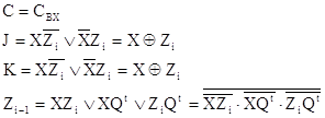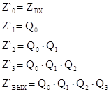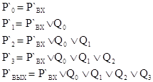 J3=Q2Ú Q1Ú Q0 K3=Q2Ú Q1Ú Q0 Если ввести понятие переноса, то микрооперация преобразования в дополнительный код реализуется по следующим формулам .