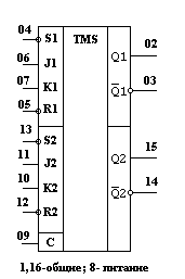 3. Проектирование дискретного устройства на элементах малой интеграции. 3.1 Выбор триггера. В качестве триггера для ДУ выберем МС К500ТВ135, объединяющую в одном корпусе два двухтактных JK-триггера с возможностью установки “0” и “1”: