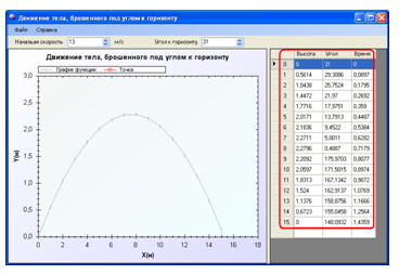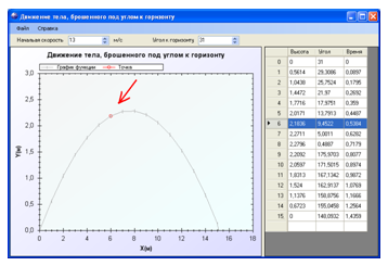 Рис. 2.3. Вывод в таблицу промежуточных значений При выделении любой строки в таблице, соответствующая точка подсветится красным цветом (рис. 2.4).