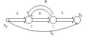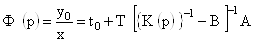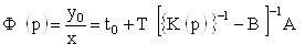 где Т – вектор-строка (1N), каждый элемент которого является коэффициентом передачи пассивной части схемы с выхода активного элемента к выходу схемы (y0); А – вектор-столбец (N1), каждый элемент которой является передачей пассивной части схемы с входа (Х0) ко входу активного элемента; ВТ– матрица (NN), каждый элемент которой представляет собой передачу пассивной части схемы с выхода i-го активного элемента ко входу j-го активного элемента; {K(p)} – диагональная матрица (NN), элементы которой являются передаточными функциями активных элементов; N – число активных элементов схемы; t0 – передаточная функция (сквозная передача) схемы при отсутствии активных элементов.
