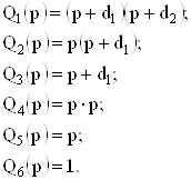 Как показывает опыт решения практических задач, именно изоморфизм затрудняет построение новых структур. Особенно это проявляется при их автоматизированном поиске. Одним из возможных выходов из сложившегося положения является разложение функции (16) в форме (19) по виду характеристических полиномов решающих усилителей, которая совместно со структурой вектора Т позволяет осуществлять разветвление процедуры синтеза. Например, для звеньев второго порядка общий для числителя и знаменателя (19) полином будет иметь 6 вариантов своего формирования [5]:
