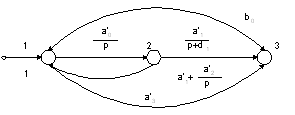 Каждому из полученных разложений для конкретного числа активных элементов будут соответствовать только две принципиальные схемы, и, следовательно, при большом N существенно сократится перебор вариантов. Так, для второго варианта разложения после формальных преобразований получим сигнальный граф, изображенный на рис. 4.