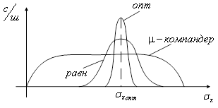 нормального распределения, Оптимальный квантователь дает минимум погрешности, если известна дисперсия и форма ФПВ сигнала. Реальные