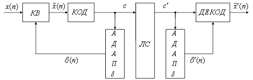 с 4.3 Адаптация по выходному сигналу Схема адаптации по выходу с переменным шагом квантования имеет вид (рисунок 9).