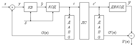 Рисунок 9 Системы адаптации по шагу в этой схеме цифровые. Схема адаптации по выходу с переменным коэффициентом усиления имеет вид (рисунок 10).