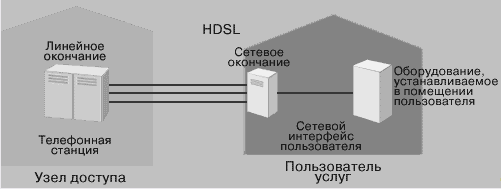 2.2.4 Применение Основной областью применения HDSL является соединения линий местных телефонных сетей или выделенные линии связи, где нужна очень высокая скорость, например, в офисных зданиях, где больше количество абонентов одновременно вынуждены связываться друг с другом. Существует еще усовершенствованный вариант данной технологии, который называется HDSL2. При всех преимуществах HDSL, второй версии хватит одной телефонной линии – двух медных проводов. Но пока широкого распространения HDSL2 не получил(Рисунок 3). [8]
