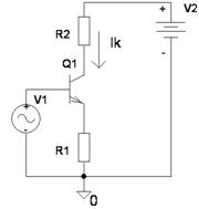 Курсовая работа: Преобразователи напряжение-токКурсовая работа: Преобразователи напряжение-токСодержание Введение 1. Простейшие преобразователи напряжения в ток 2. ПНТ на основе дифференциальных каскадов 3. Повышение линейности ПНТ 4. Исследование ПНТ Библиографический список Введение Преобразователи напряжение-ток (ПНТ) также являются важным элементом в схемотехнике аналоговых электронных устройств. На их основе могут быть выполнены различные прецизионные операционные усилители, в которых ПНТ используется как входной дифференциальный каскад; ПНТ органично входят в структуры АПН и могут использоваться в различных измерительных схемах. 1. Простейшие преобразователи напряжения в ток Принцип преобразования напряжения в ток может быть проиллюстрирован с помощью простейшего усилительного каскада на одиночном транзисторе (рис. 1). (Отметим, что резистор R1 выполняет функцию подключения коллектора к шине питания; он достаточно низкоомный и служит как датчик тока при измерении тока коллектора.)