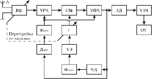 Рис.1. Структурная схема супергетеродинного приёмника.