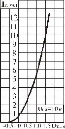 Рис.2. Проходная характеристика транзистора КП305Д. Для линейной части ПРМ в качестве активного усилительного элемента выберем транзистор КП305Д: Общие сведения: кремниевый планарный полевой с изолированным затвором и встроенным каналом n-типа, предназначен для работы во входных каскадах высокочастотных усилителей с высоким входным сопротивлением. Основные параметры: Крутизна характеристики (мА/В): Ёмкость входная (пФ): Ёмкость проходная (пФ): Коэффициент шума (дБ): Для средней крутизны справедливо: