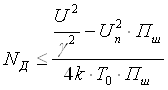 де U – задана чутливість, Uп – напруженість поля зовнішніх перешкод γ - співвідношення ефективних напруг сигнал/шум, Т0=290 ДО - стандартна температура приймача, Пш - шумова смуга лінійного тракту, k=1,38×10-23Дж/гради -постійнаБольцмана. Припустимий