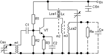Рисунок 4 – Схема вхідного ланцюга з індуктивним зв'язком з антеною й транзистором У якості елемента настроювання будемо використовувати конденсатори змінноїємності. Коефіцієнт перекриття по частоті в заданомудіапазоні: