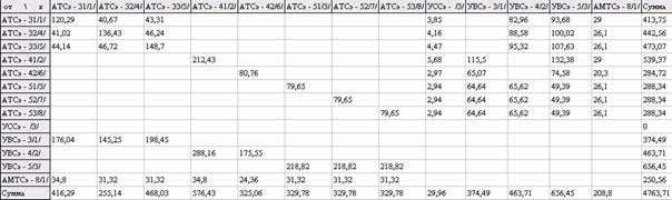 Таблица 12.2 Матрица ПЦТ пропорционально ёмкости станций