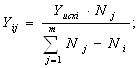 7.3 Пропорционально условным исходящим интенсивностям нагрузок станций Интенсивность исходящей от АТСi нагрузки Yисхi можно распределить пропорционально условным исходящим нагрузкам АТС сети. Под условной исходящей нагрузкой АТСj понимается произведение фактического значения исходящей нагрузки Yисхj на коэффициент nij, характеризующий телефонное тяготение абонентов i-ой РАТС к абонентам j-ой РАТС.