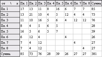 11.2 Пропорционально емкости станции Таблица 11.2 Структурная матрица потоков пропорционально ёмкости станций