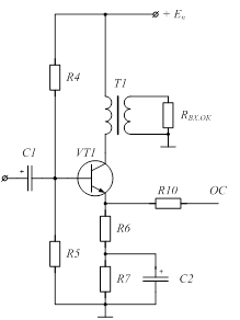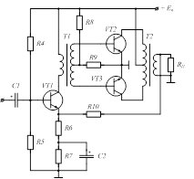Рисунок 5 – Фазоинверсный каскад Зададимся падением напряжения в цепи эмиттера и на первичной обмотке трансформатора,