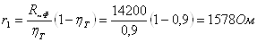 Задаемся, КПД межкаскадного трансформатора hт=0,9 и определяем сопротивление первичной обмотки: