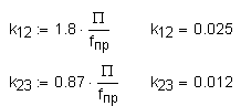 Выберем Д< 0.5 = 0,2 Тогда Д1= А - (n - 1) ∙Д = 2 - (3 - 1) ∙ 0,2 = 1,6 где А=2, при n =3 [3, c.213]. Из рисунка 7.10 [3] определяем при Д=0,2 нормированные значения коэффициентов связи: К12=1,8; К23=0,87; К34=0,6; К450,48; К56=0,35; К67=0,88. Абсолютные значения коэффициентов связи и затухания [3]: ki, i+1=Ki, i+1*П / fпр, d1=Д1*П / fпр. (13)