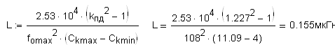 где kпд = fomax / fomin = 108/88 = 1,227 - коэффициент перекрытия поддиапазона; Скmах и Ckmin - максимальная и минимальная емкости выбранного блока конденсаторов, которые выбираются из следующих соображений. Начальная емкость контура: