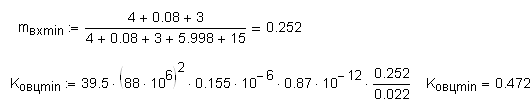 Определяем коэффициент передачи входной цепи для крайних частот поддиапазона (f = 88 - 108МГц) по формуле