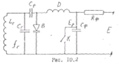 Рис. 9. Содержащийся в схеме рис.9 дроссель Д устраняет влияние конденсатора (обычно большой емкости) фильтра Сф на настройку резонансной цепи гетеродина. Для устранения же влияния на нее самого дросселя его индуктивность Lд должна заметно превышать значение индуктивности резонансной цепи гетеродина fг, практически достаточно иметь LD = (5.10) Lг. Как известно, значение его емкости Ср нужно выбрать таким образом, чтобы его сопротивление на частоте гетеродина fг оказалось практически равным нулю. Использованная литература 1. Акимов Н.Н., Ващуков Е.П., Прохоренко В.А., Ходоренок Ю. П.: Резисторы, конденсаторы, трансформаторы, дроссели, коммутационные устройства РЭА, справочник - Минск "Беларусь" 1994 г. 2. Буга Н.Н., Фалько А.И. Радиоприёмные устройства: Учебник для вузов - М.: Радио и связь, 1996. 3. Калихман С.Г., Левин Я.М. Радиоприёмники на полупроводниковых приборах. Теория и расчёт. - М.: Связь, 1979. 4. Методические указания по выполнению курсового проекта. 5. Проектирование радиоприемных устройств. Под ред.А.П. Сиверса. Учебное пособие для вузов.М., "Сов. радио", 1976. 6. Справочник по учебному проектированию приемно-усилительных устройств / М.К. Белкин, В.Т. Белинский и др. - 2-е изд. - В. ш., 1988.
