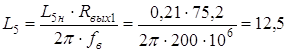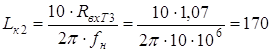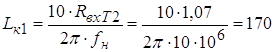 Найдём Lк, исходя из условий, что на нижней частоте полосы пропускания её сопротивление много больше сопротивления нагрузки. В нашем случае: