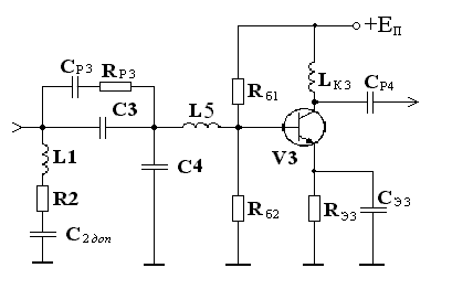 Схема каскада с эмиттерной термостабилизацией приведена на рисунке 2.7. Аналогично, как и для предыдущего каскада найдём Lк: