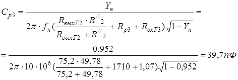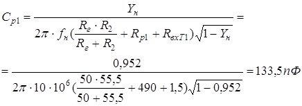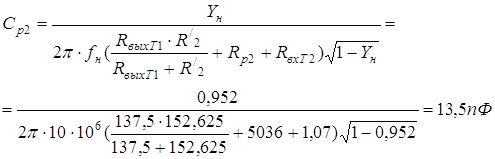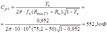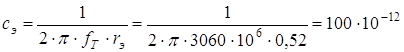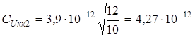 где СUкк1 – ёмкость коллектор-эмиттерного перехода, рассчитанная при Uкэ1, Uкэ2 – напряжение, при котором необходимо найти СUкк2. Подставим численные значения в формулу (2.8):
