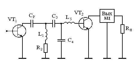 Рисунок 2.13 –Оконечный каскад с разделительными и блокировочными конденсаторами. Сдоп выбирается таким, что на нижней частоте её сопротивление было много меньше, чем R2, то есть: