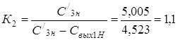 Найдём коэффициент усиления предоконечного каскада по формуле (2.40), где Rвх.н – входное сопротивление предоконечного транзистора, нормированное относительно выходного сопротивления входного транзистора: