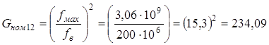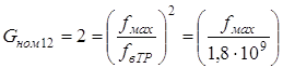 где fвТР – граничная частота транзистора. Таким образом fмах= Подставив в формулу (2.41) найденное значение максимальной частоты и верхнюю частоту заданной полосы, найдём усиление: