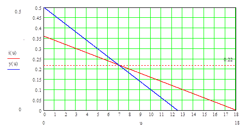 Рисунок 2.2. – Нагрузочные прямые На рисунке 3.2. i(u) - нагрузочная прямая по постоянному току (красная) y(u) - нагрузочная прямая по переменному току (синяя) Сопротивление по переменному току: