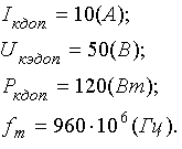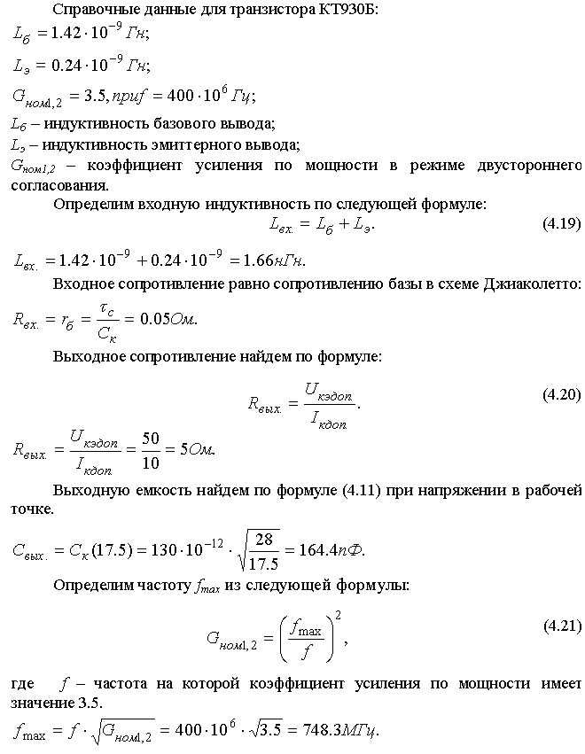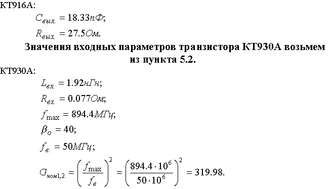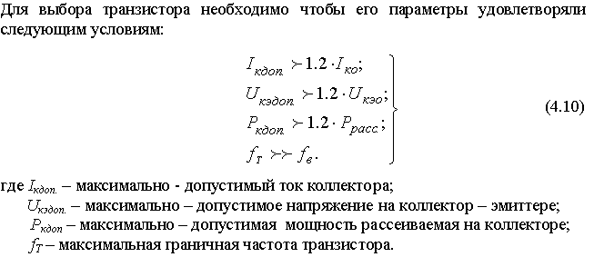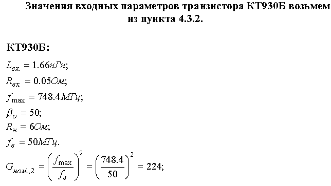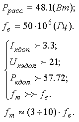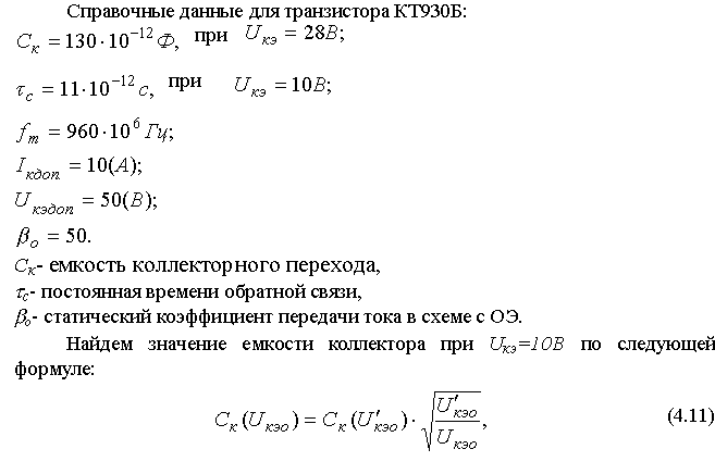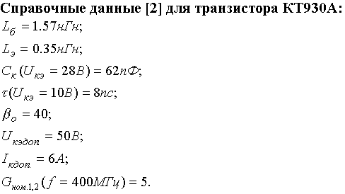 Исходя из полученных значений, выберем выходной транзистор КТ930Б с помощью справочника [2]. Транзистор имеет следующие допустимые параметры: