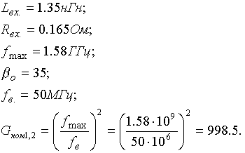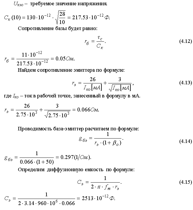 Входную индуктивность определим по формуле 4.19. Определим входное сопротивление по формуле (4.12), для этого найдем Ск при напряжении Uкэ = 10В воспользовавшись формулой (4.11.)