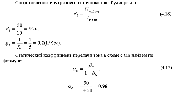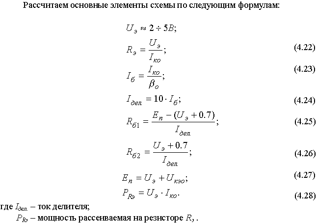 6.3 Расчет схемы термостабилизации В входном каскаде используется схема активной коллекторной термостабилизации. Рассчитаем элементы схемы воспользовавшись формулами приведенными в пункте 4.4.3 и рисунком 4.9.