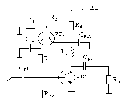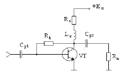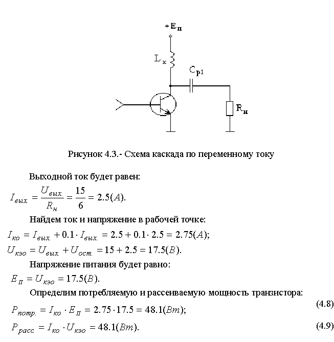 2. Расчет рабочей точки при использовании дросселя в цепи коллектора. Схема каскада по переменному току приведена на рисунке 4.2.
