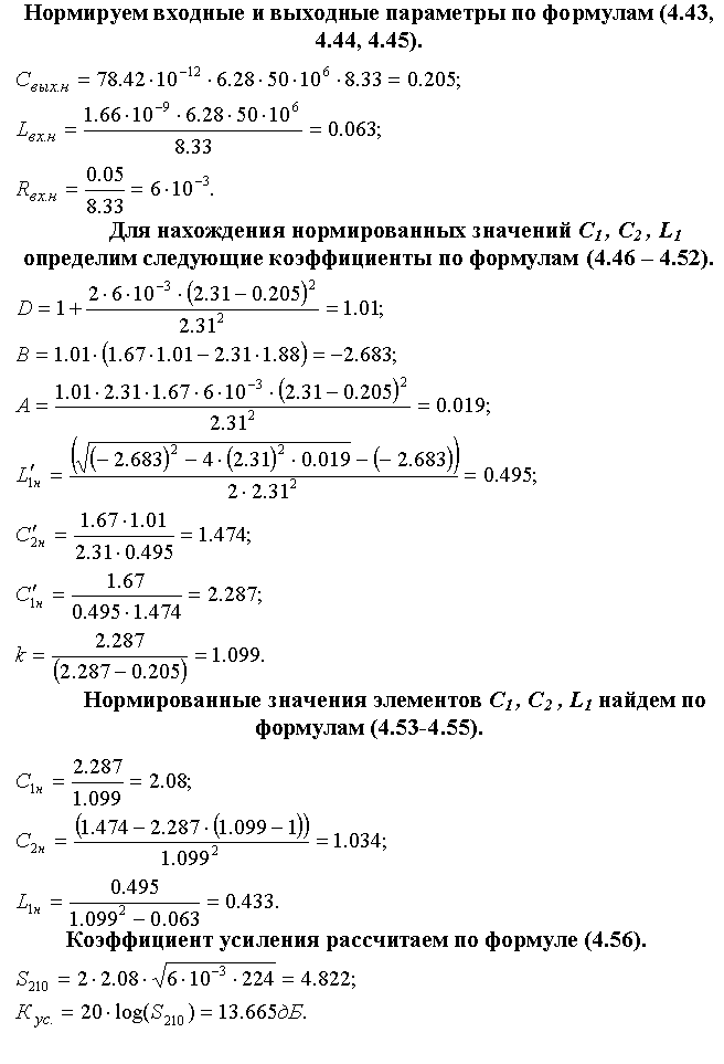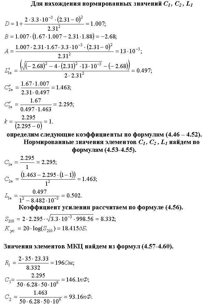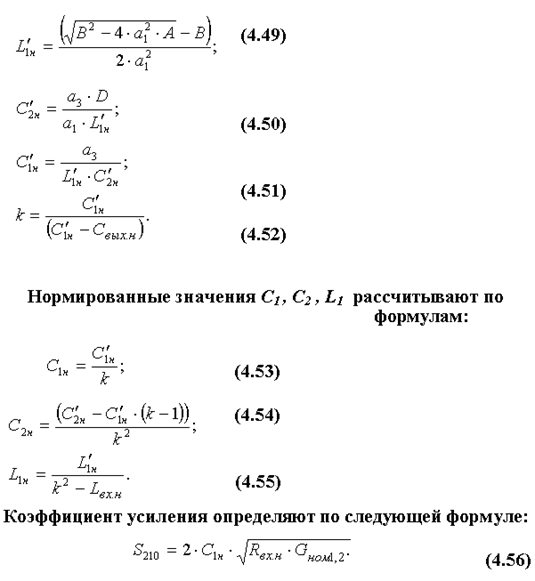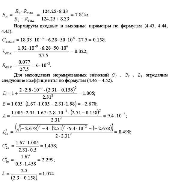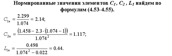 Для нахождения нормированных значений С1 , С2 , L1 рассчитывают следующие коэффициенты: