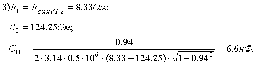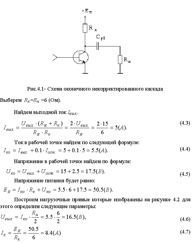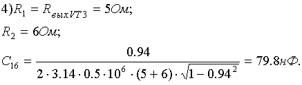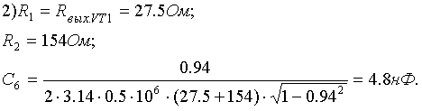 Нагрузкой для предоконечного каскада является параллельное соединение Rвых. транзистора и R1 .Где R1– сопротивление, входящее в межкаскадную корректирующую цепь, рассчитанное в пункте 4.5.2.