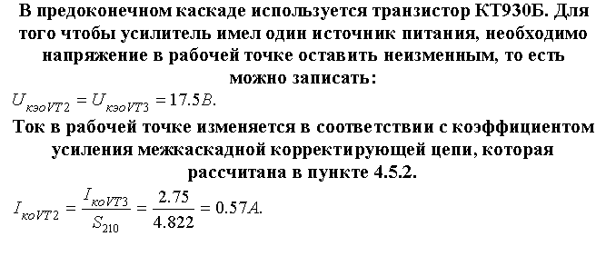 Ток в рабочей точке изменяется в соответствии с коэффициентом усиления межкаскадной корректирующей цепи, которая рассчитана в пункте 5.4.