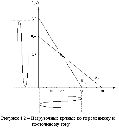 Рисунок 4.4 – Нагрузочные прямые по переменному и постоянному току 4.2 Выбор транзистора