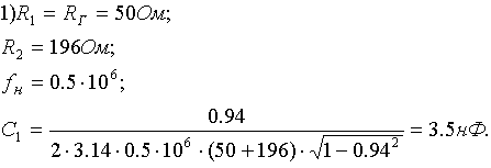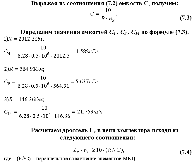 7 Расчет разделительных и блокировочных конденсаторов Рассчитаем разделительные конденсаторы по следующей формуле: