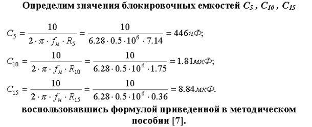 Блокировочные конденсаторы С4 , С9 , С14 , определим из следующего условия: