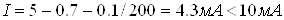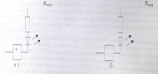 Блок индикации а) для индикации выходных слов с ТЭЗов; б) для индикации сигналов «годен» и «брак» Используем светодиоды АЛ307AM (цвет красный, сила света 0.15 мкд Uпр=2В. Iпрmах=20мА). Расчет величины сопротивления ограничивающих резисторов на входе семисегментного индикатора. Учитывая, что падении напряжения между электродами открытого диода U1=0,7В и падение напряжена между эмиттером и коллектором открытого транзистора U2=0,1В, ток через резистор: