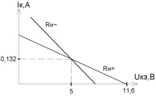 Построим нагрузочные прямые для двух описанных выше каскадов. а) б) Рисунок 4.2Исходя из вышеуказанных результатов вычислений, целесообразней всего применять дроссельный каскад, так как при использовании дроссельного каскада меньше напряжение питания, рассеиваемая мощность, а также потребляемая мощность (что очень существенно). 4.3 Расчет эквивалентной схемы транзистора