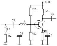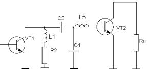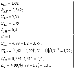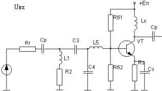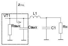 Денормируя полученные значения, определим: В усилительных каскадах расширение полосы пропускания связано с потерей части выходной мощности в резисторах корректирующих цепей (КЦ) либо цепей обратной связи. От выходных каскадов усилителей требуется, как правило, получение максимально возможной выходной мощности в заданной полосе частот. Из теории усилителей известно, что для выполнения указанного требования необходимо реализовать ощущаемое сопротивление нагрузки для внутреннего генератора транзистора равным постоянной величине во всем рабочем диапазоне частот. Этого можно достигнуть, включив выходную емкость транзистора в фильтр нижних частот, используемый в качестве