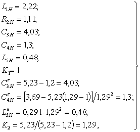 а) б) ![]() Рисунок 4.5.1 Коэффициент усиления каскада на транзисторе VT2 в области верхних частот можно описать выражением: где RВХН –нормированное входное сопротивление транзистора VT2; Для расчета элементов воспользуемся формулами: ; (4.32) С помощью таблицы получены следующие нормированные значения элементов.