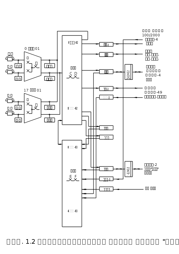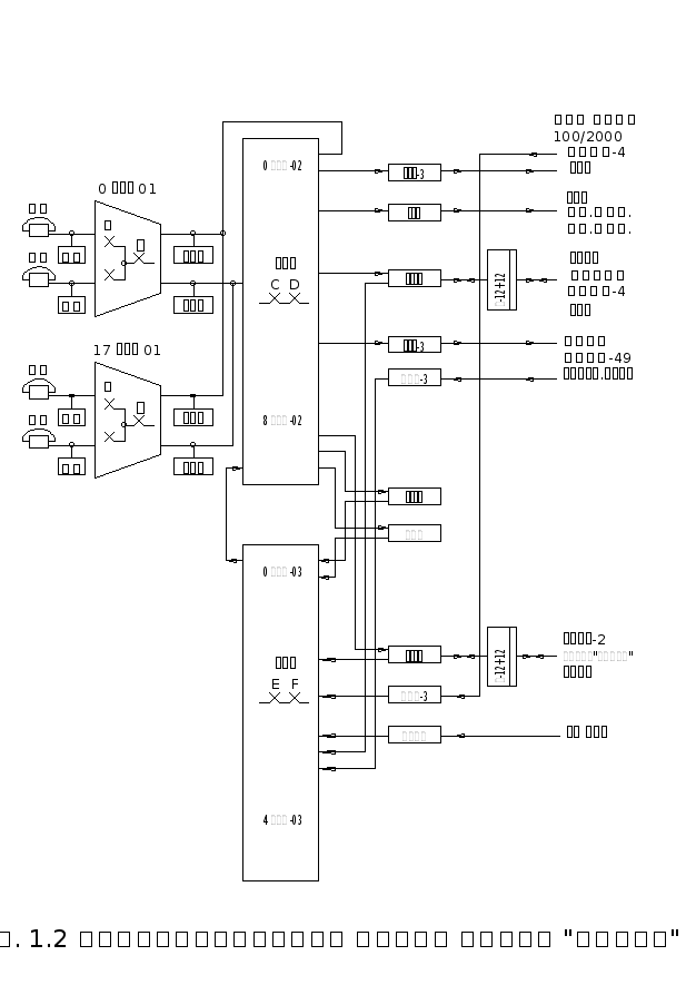 Нумерация на сети связи должна быть согласована: абоненты всех ЖАТС узла вызывают абонентов как своей, так и встречных станций единым четырехзначным номером без прослушивания повторного сигнала ОС. Для этого на АТСКЭ "Квант" предусмотрена возможность гашения и восстановления от одной до трех первых цифр номера как при входящей, так и при исходящей связи с другими станциями. Нумерация абонентских линий малых АТС может быть трехзначной или четырехзначной. Для выхода на УАТС выбираем вариант с набором индекса выхода 7 и затем абонентского номера. Оборудование и программное обеспечение АТСКЭ "Квант" не предусматривает подачу повторного сигнала ОС после набора индекса выхода, кроме связи с АМТС. При входящей связи от УАТС, МТС и других станций сети абоненту может быть подан сигнал “ответ станции” (ОС) при подключении "Кванта". Для выхода на ЖАТС2 выбираем вариант с набором индекса выхода 3 и затем абонентского номера. Для выхода на сеть связи общего пользования (ГАТС) выбираем цифру 9, после чего набирается полный шестизначный номер городского абонента, который транслируется в приборы ГАТС. Для выхода на АМТС принимаем варианты набора индекса 8, после чего дается повторный сигнал ОС. Затем набирается трехзначный код вызываемого пункта и зоновый (5 знаков) или междугородный (7 знаков) номер вызываемого абонента. Для обеспечения входящей связи от сети общего пользования следует учитывать, что абонент ГАТС набирает число цифр номера принятое на сети – в данном проекте – шесть. После занятия соединительной линии на проектируемую АТС должны транслироваться четыре цифры номера абонента проектируемой ЖАТС. Для выхода на УАК принимаем цифру 0, после чего набирается трехзначный код вызываемого пункта сети АКТС и четырехзначный номер вызываемого абонента. Линиям специальной связи присваиваются номера: стол справок ЖАТС – 1-31; стол заказов МТС – 1-21. Оборудование АТСКЭ "Квант" позволяет транслировать и принимать цифры номера по соединительным линиям со встречными АТС декадным или многочастотным кодом. Функциональная схема АТСКЭ "Квант" приведена на рис. 1.2.