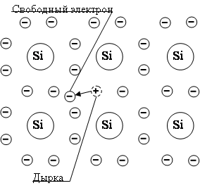 При низкой температуре эта структура устойчива, свободных носителей электрического заряда нет, и полупроводник ведет себя как изолятор. С повышением температуры некоторые из электронов начинают сходить со своих немыслимых орбит. И таким образом появляются свободные электроны. Чем выше температура, тем больше свободных электронов, тем выше проводимость полупроводника. А на орбите того атома, который покинул электрон, образовалось пустое место, недостаток электрона. Его назвали дыркой – виртуальной частицей с положительным зарядом