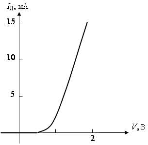 Вольтамперная характеристика диода показывает, что полупроводниковый диод начинает пропускать ток, когда прикладываемое напряжение превышает потенциальный барьер. Если напряжение меньше потенциального барьера, то течет очень маленький ток, связанный с электронно-дырочными парами. Для германия это микроамперы, а для кремния – наноамперы.